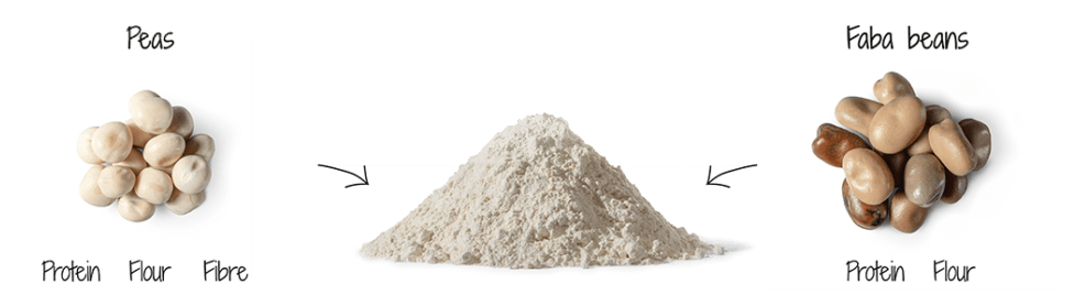 Faba Protein, Pea Fibre, Pea Starch and flours from peas and beans.
